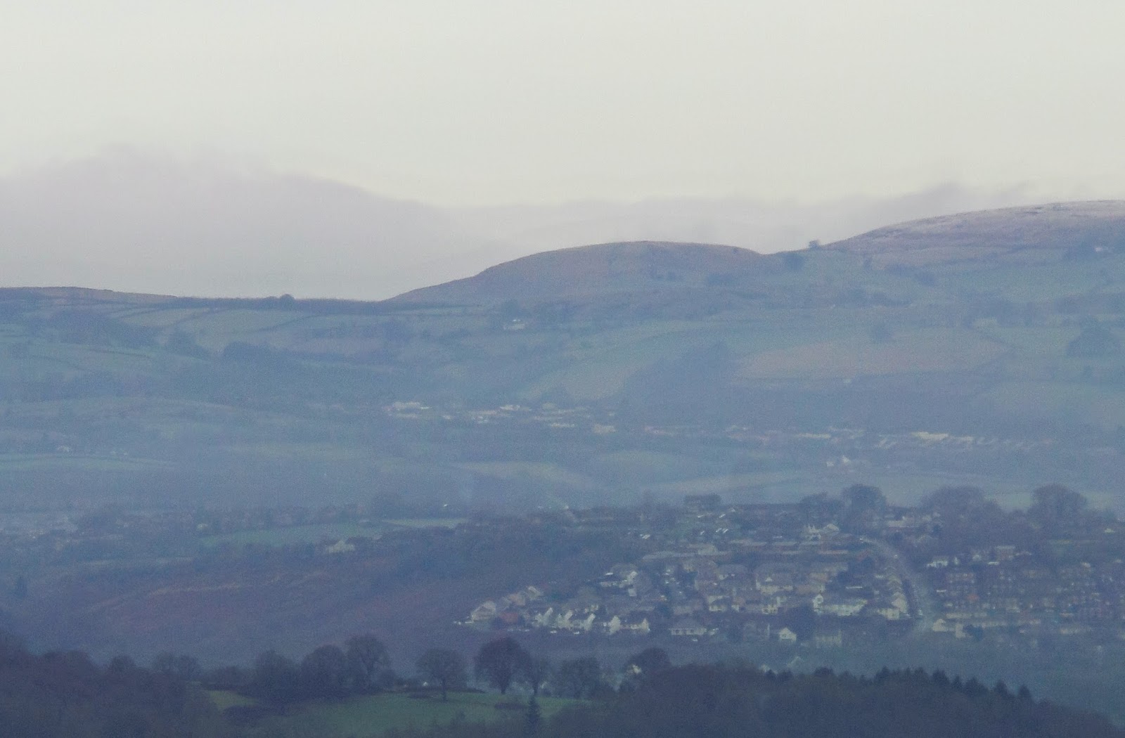Luckily the weather improved a lot overnight and, although it was quite cold when we set out from the Premier Inn on Sunday morning, it was dry and the distant view of the mountains motivated us to make our way back along the Bedwas Road towards Caerphilly castle.